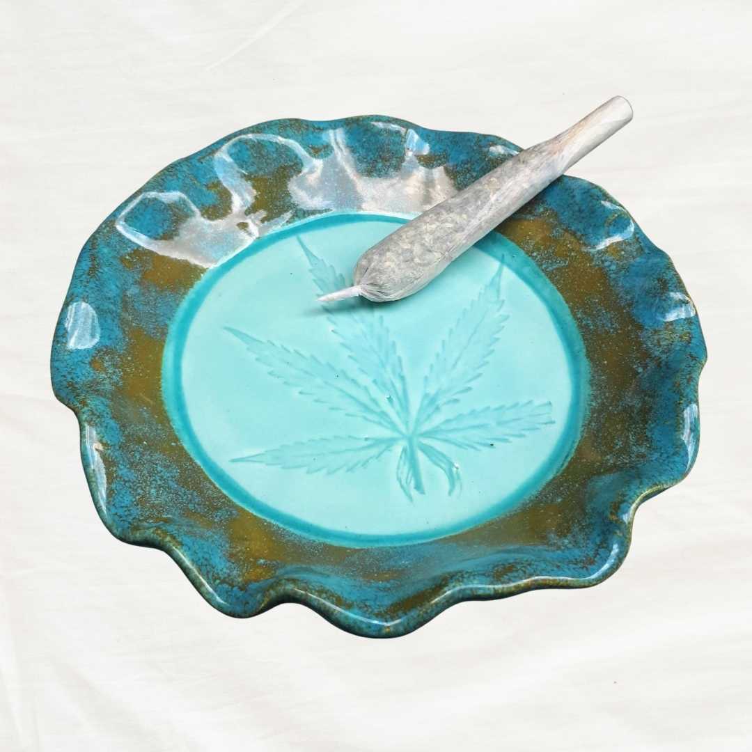 Our ceramic dishes are made from a real cannabis leaf impression and no...